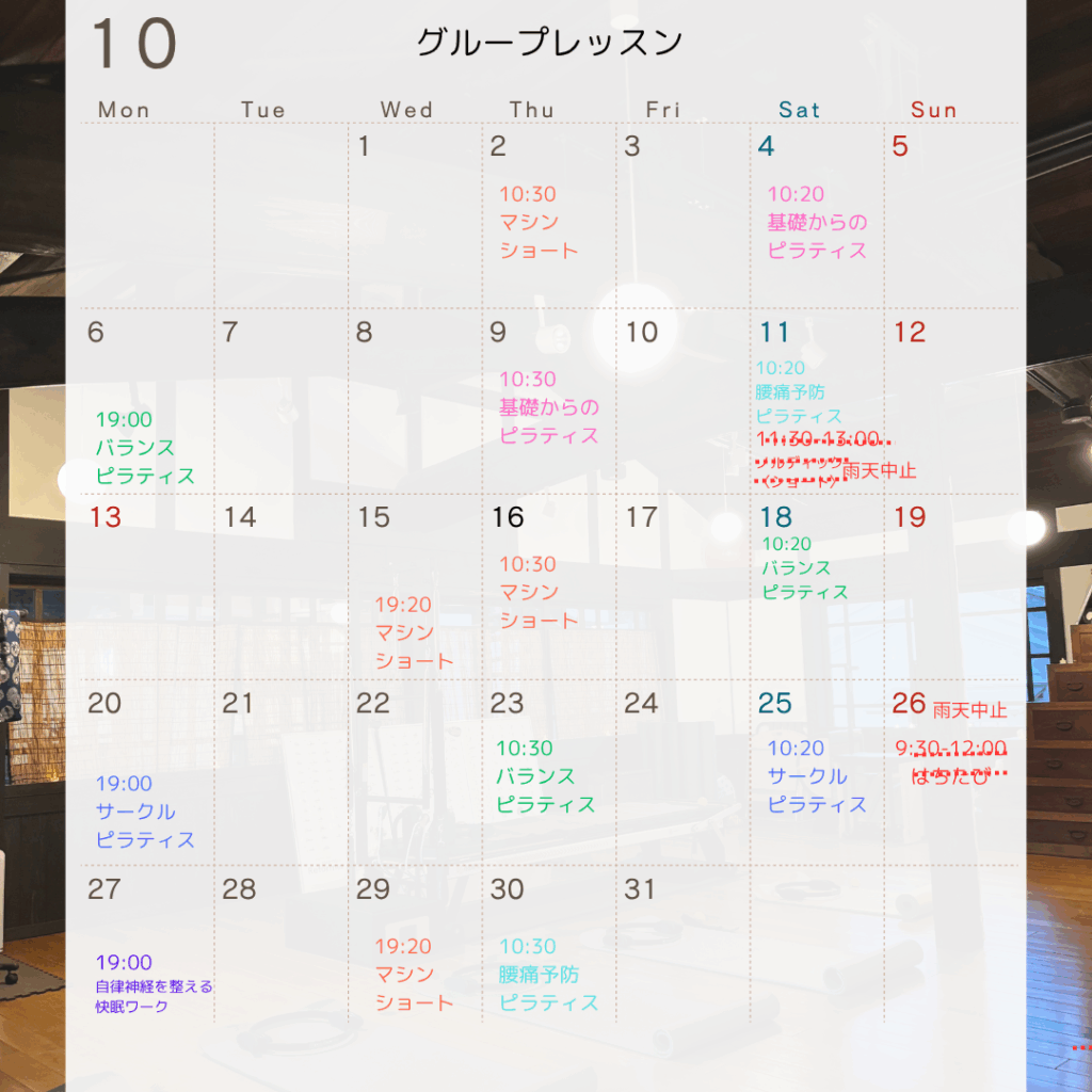 2025年10月グループレッスンスケジュール