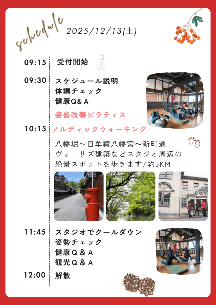 今回はピラティスとノルディックウォーキングで体を整えながら新緑眩しい八幡堀を歩きます。