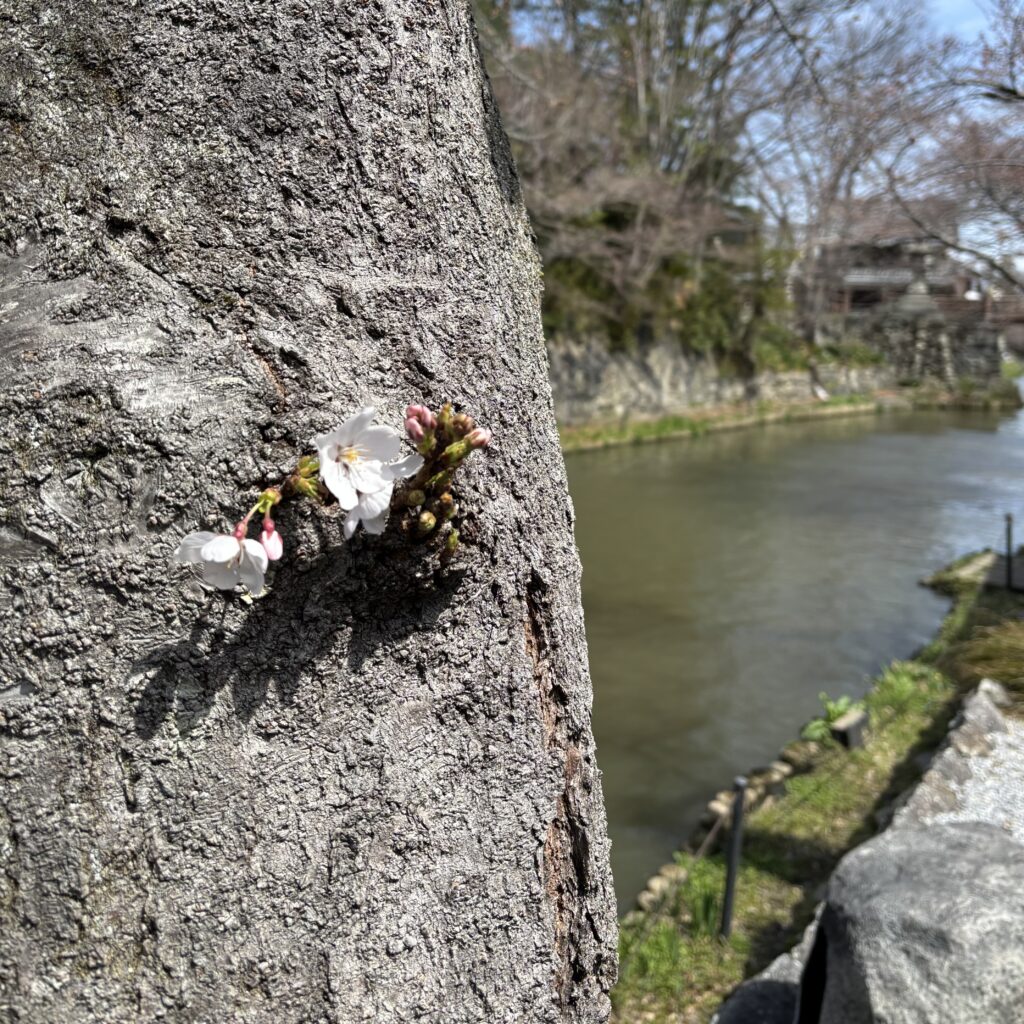 昨年は3月29日に開花しました。みんなで桜の花びらを探しに歩きましょう。