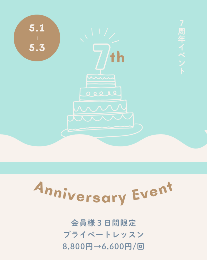 【イベント】7周年プライベートレッスン【5/1~5/3】